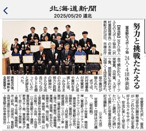 このたび、令和七年度NPO法人ふらのスポーツ協会表彰式におきまして、身に余る「スポーツ栄誉賞」を賜りましたことをご報告申し上げます。