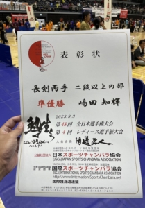 2023 第47回世界選手権大会/第48回全日本選手権大会成績 2025 1/10 2025.01.10 長剣両手二段以上ノ部 準優勝 嶋田 知輝 今回は世界選手権、全日本選手権の合同大会という事でしたが 惜しくも優勝を逃してしまいました。 来年度の大会に向けて今後も精進して参りますので皆様応援宜しくお願い致します。 三代目 時境/嶋田 知輝 大会